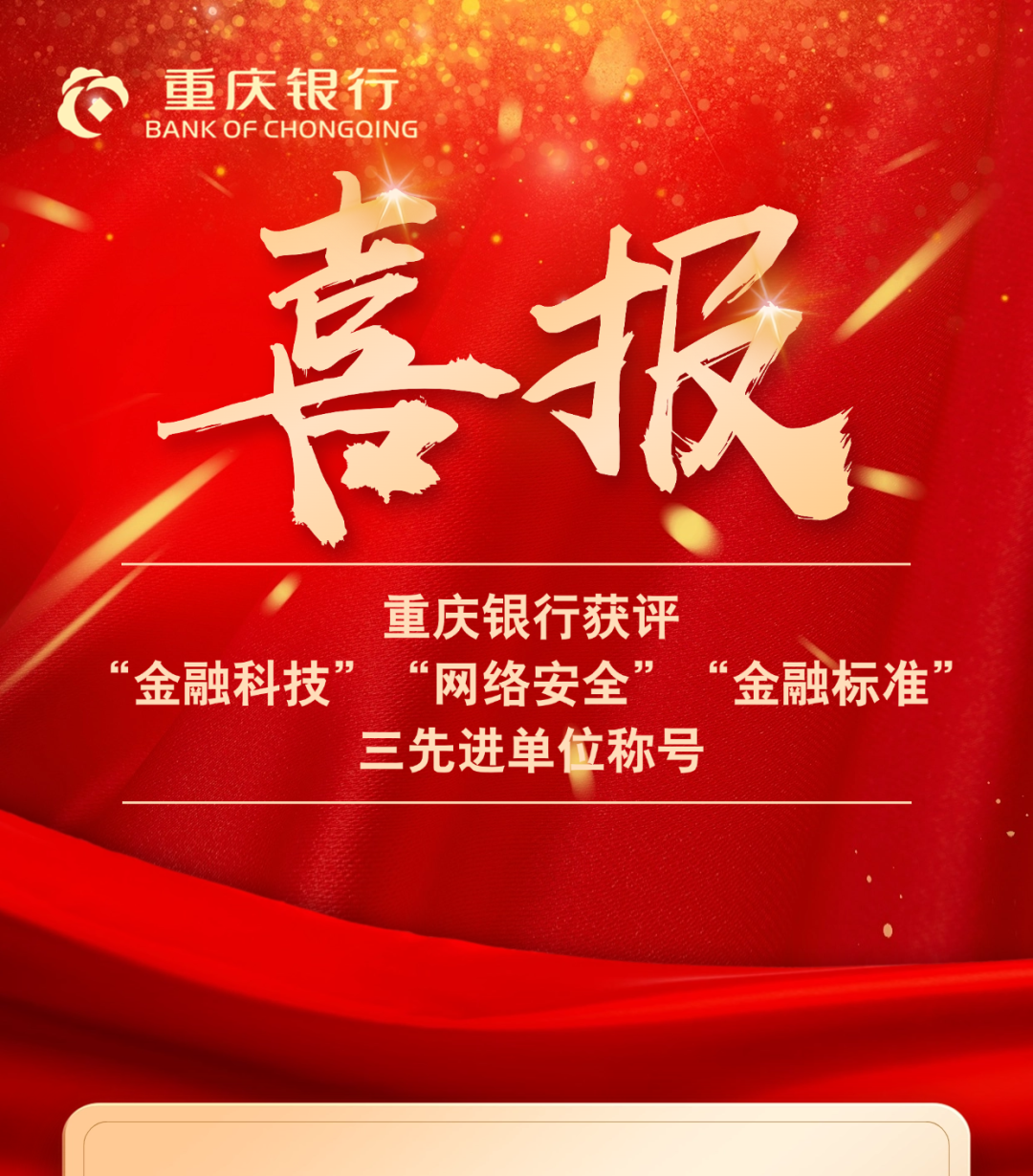 近日,经中国人民银行重庆市分行评定,重庆银行获得“金融科技工作先进单位”“网络安全管理先进单位”“金融标准工作先进单位”称号。