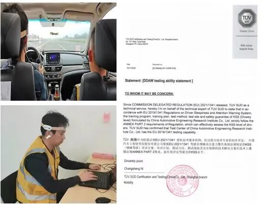 (EU) 2021/1341 Driver Drowsiness and Attention Warning Systems( DDAW)法规是欧盟强制性法规,于2022年7月6日对新认证车型实施,2024年7月7日对新注册车型实施。为具备全面专业的DDAW测试能力,中国汽研同中国科学院心理研究所工业组织与社会心理学研究组、TüV 南德充分研究探讨,确定了一套卡洛琳斯嗜睡评估(KSS)资质认定的培训方法,并获得TüV 南德授权认可。