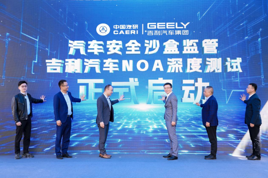 4月18日,由中国汽车工程研究院股份有限公司(简称:中国汽研)主办,吉利汽车研究院(宁波)有限公司(简称:吉利汽车)协办的汽车安全沙盒监管吉利汽车NOA深度测试启动会于中国汽研北京院正式拉开序幕。国家市场监督管理总局缺陷产品召回技术中心、中国汽研以及吉利汽车等相关领导专家莅临活动现场,共同见证本次沙盒监管深度测试的开启。