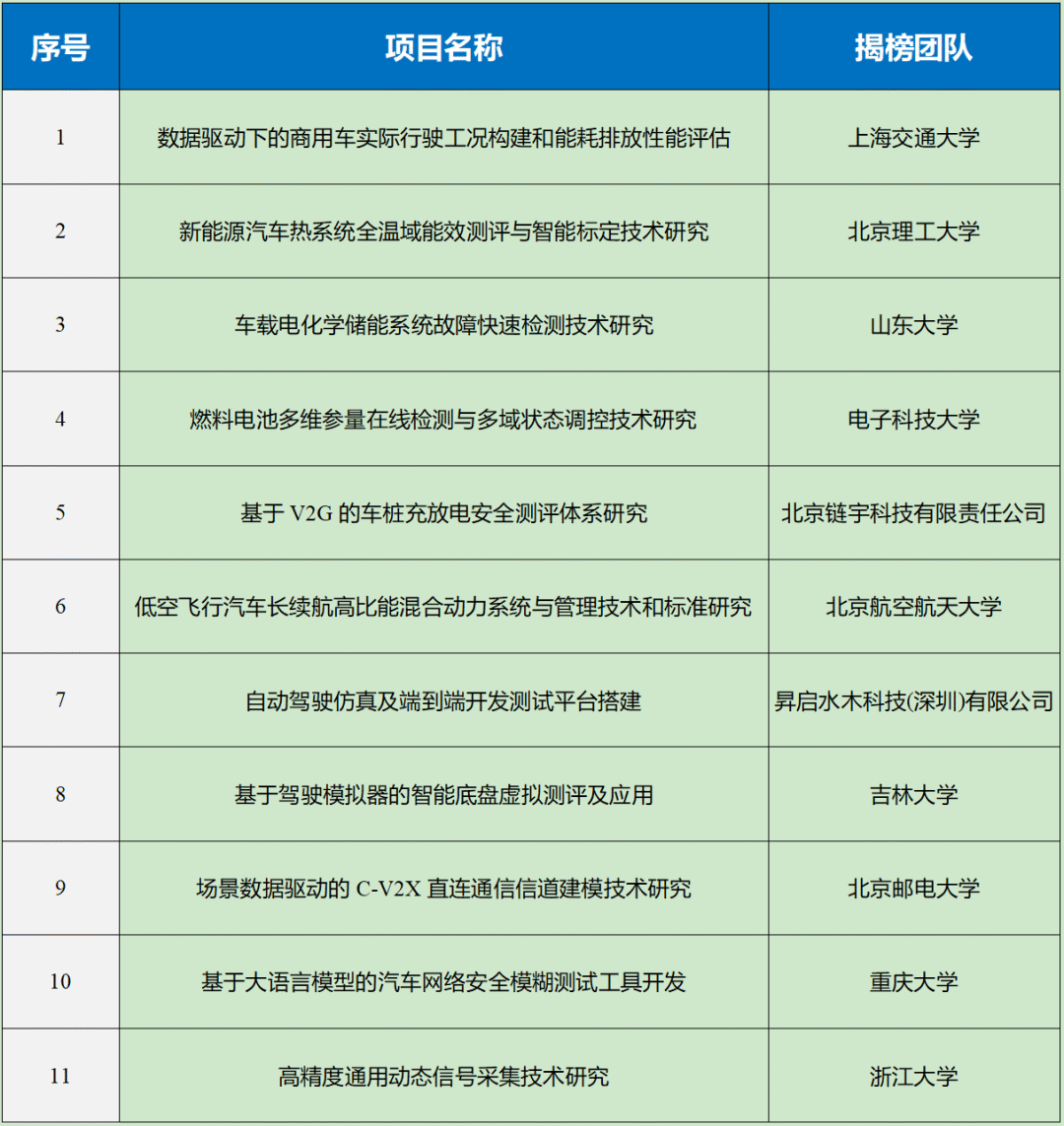 中国汽研2024年度“揭榜挂帅”项目拟立项名单