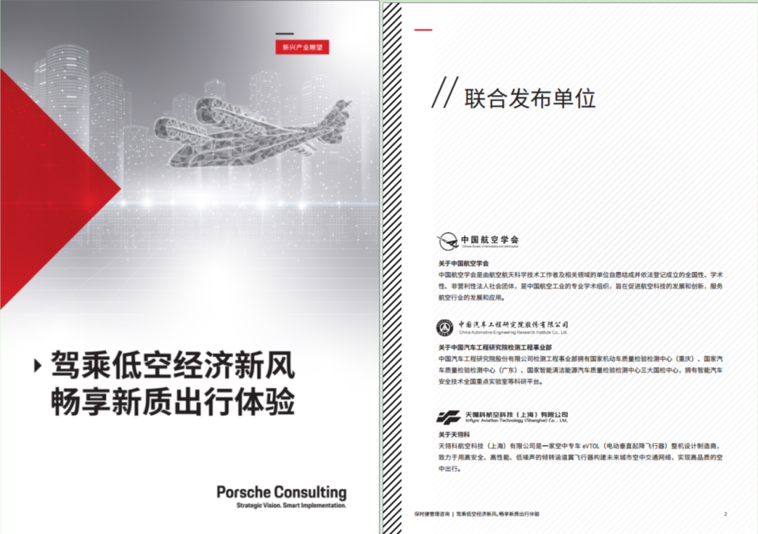近日,中国汽研联合中国航空学会、保时捷咨询、天翎科编制的低空经济行业白皮书《驾乘低空经济新风,畅享新质出行体验》正式发布,标志着中国汽研在低空经济领域迈出关键一步。