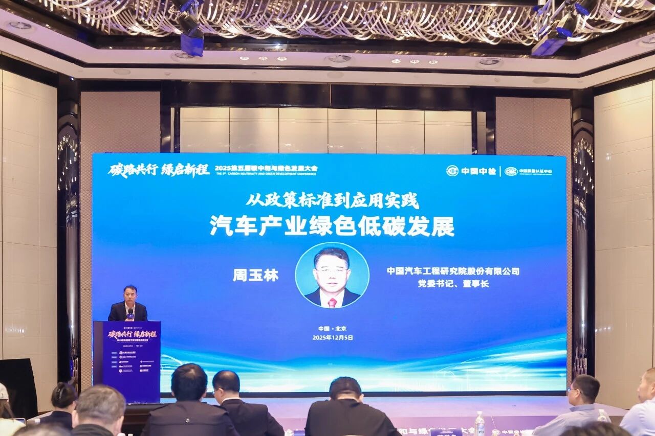 12月5日,由 中国质量认证中心 主办的“2025第五届碳中和与绿色发展大会”在北京召开。中国汽车工程研究院股份有限公司(以下简称: 中国汽研 )党委书记、董事长周玉林受邀出席。