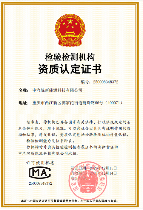 近日,中国汽研新能源公司获批变更成为国家氢能动力质量检验检测中心法人单位,同时获得国家级检验检测机构资质认定(CMA)证书。