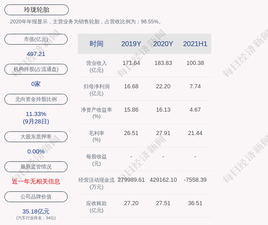 2020年年报显示,玲珑轮胎的主营业务为销售轮胎,占营收比例为:98.55%。