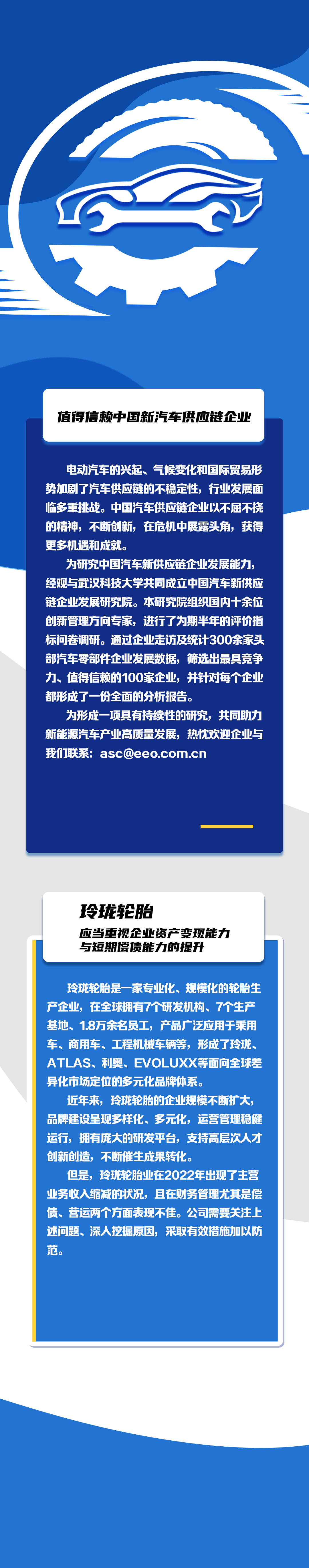 ——拓展“五新”板块,建设双碳体系。玲珑轮胎响应国家“双碳”战略,通过在新技术、新工艺、新材料、新装备、新能源这“五新”板块的拓展,助力实现“双碳”目标。2022年,玲珑轮胎顺利加入全球可持续天然橡胶平台(GPSNR),并在2022科隆轮胎展上推出了首款可持续绿色轮胎,该款轮胎使用51%可持续材料,全新低滚阻设计技术使轮胎滚动阻力较普通产品降低20%,综合性能达到滚阻A级、噪声B级。