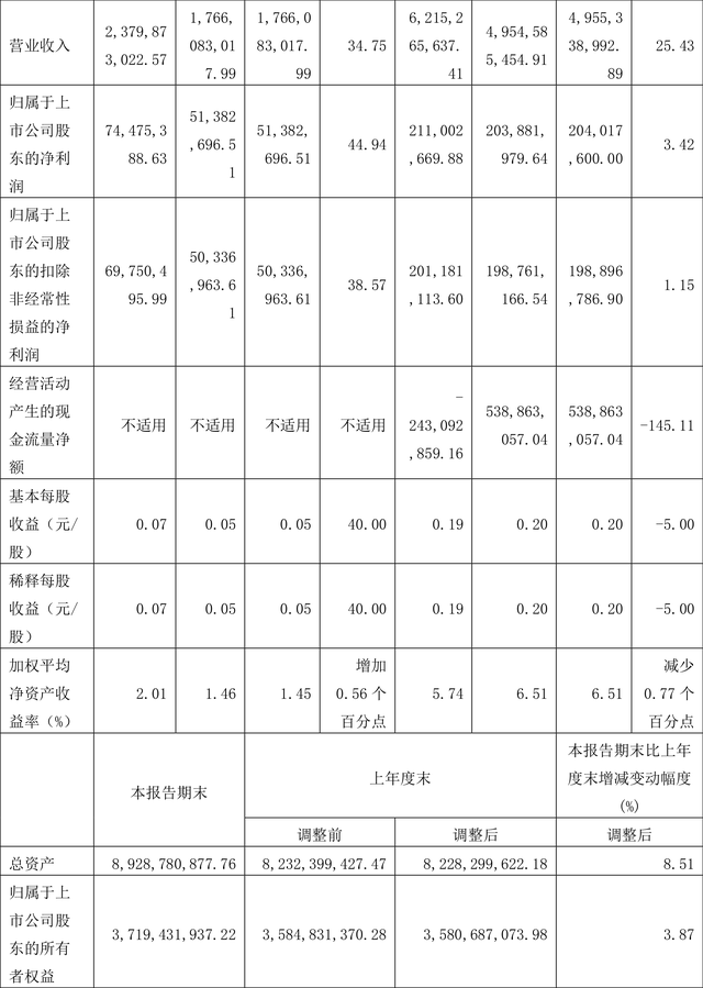 根据三季报,公司第三季度实现营业总收入23.8亿元,同比增长34.75%,环比增长20.03%;归母净利润7447.54万元,同比增长44.94%,环比增长2.91%;扣非净利润6975.05万元,同比增长38.57%,环比增长0.90%。