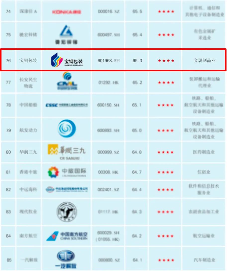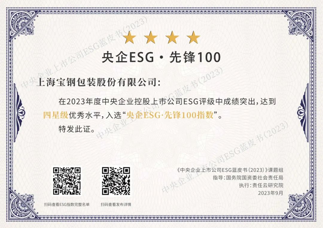 日前,第六届中国企业论坛平行论坛“践行ESG理念,创建一流企业——中央企业ESG论坛”发布了“央企ESG·先锋100”指数,宝钢包装作为中央企业控股上市公司入选“央企ESG·先锋100指数”。