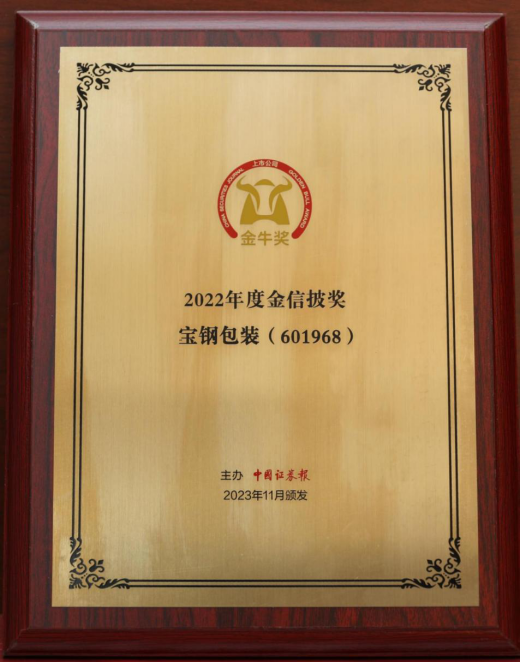 日前,宝钢包装荣获中国证券报主办的“第二十五届上市公司金信披奖”,充分体现了资本市场和广大投资者对公司信息披露工作的认可与肯定。