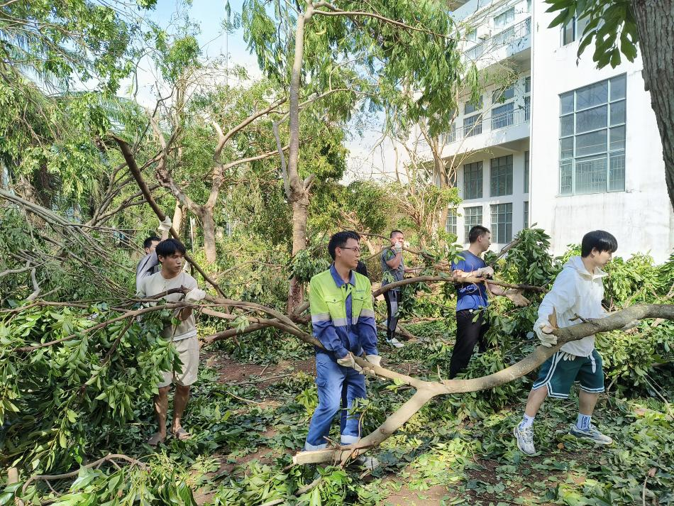 “摩羯”过境后,全资子公司海南星之海新材料有限公司党支部主动联系儋州市政府相关部门,组织党员突击队、团员青年突击队共计150余人次,分别支援洋浦技校、五山社区、庆阳路等区域,开展道路清障、固定倒伏树木、清扫路面等工作,累计固定倒伏树木900余棵。