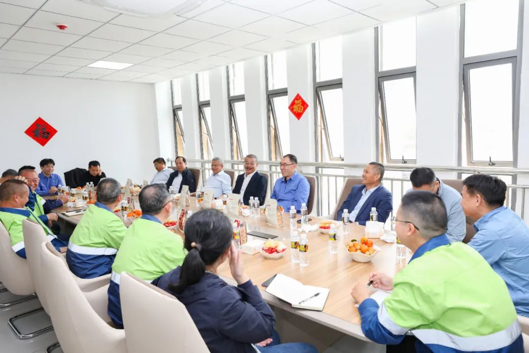 随后,公司领导一行来到欣达公司,向欣达公司经营班子成员和一线员工拜年。在座谈会上,公司领导详细了解欣达公司2025年工作计划以及当前面临的工作难点,要求欣达公司要坚持安全环保生产,要保持与上下游企业的积极沟通,保证原料供应稳定和客户回款顺畅,组织好新型建材业务的生产经营工作,努力在新一年继续创造更加亮眼的业绩。