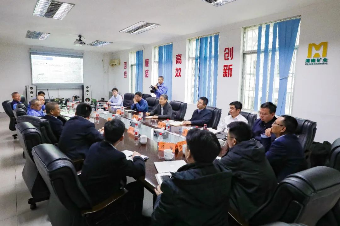 刘明东对邵安林院士和北京科技大学科研团队的到来,以及对海矿铁矿石业务提供技术指导表示感谢。石碌铁矿正在推进绿色矿山、智能矿山、“无尾”矿山建设,需要借助先进、通用化的科技创新成果促进技术革新优化,希望能与北京科技大学团队继续加深交流,共同探寻合作契机与路径,推动实现公司效益最大化。