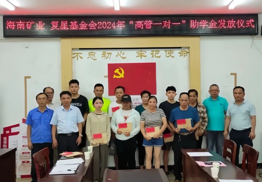 开展教育帮扶。举办第9期高管“一对一”助学活动,向在读大学生、特别困难家庭在读技校生共25名学子发放年度助学金5.3万元。自2016年以来,海南矿业和复星基金会累计开展助学行动9期,累计受捐助学子143人次,总金额达35.4万元。此外,每年六一儿童节期间,海南矿业会在兴诗村开展六一儿童节关爱活动,向当地儿童送上慰问金和图书、文具、书包、衣服等生活和学习用品。