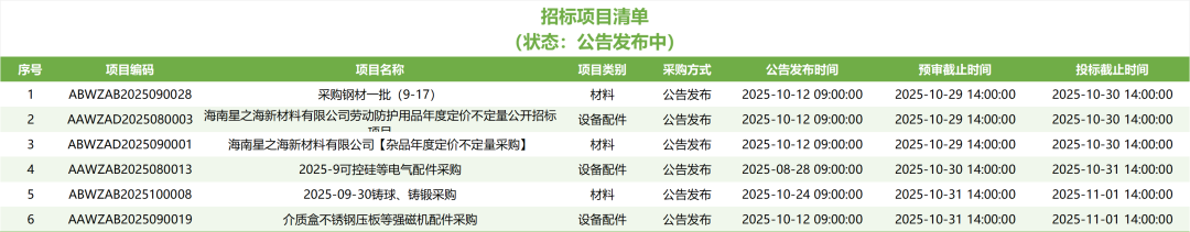 海南矿业招投标清单(第八期)