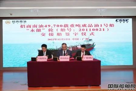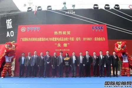 2022年12月12日,由中国船舶集团旗下广船国际为招商局南京油运股份有限公司建造的49700载重吨成品油船1号船“永傲”轮命名交付,标志着广船国际“三确保”攻坚再获胜利。“永傲”轮的加盟,为招商南油成品油船队再添新兵,进一步增强了公司服务战略客户的能力。