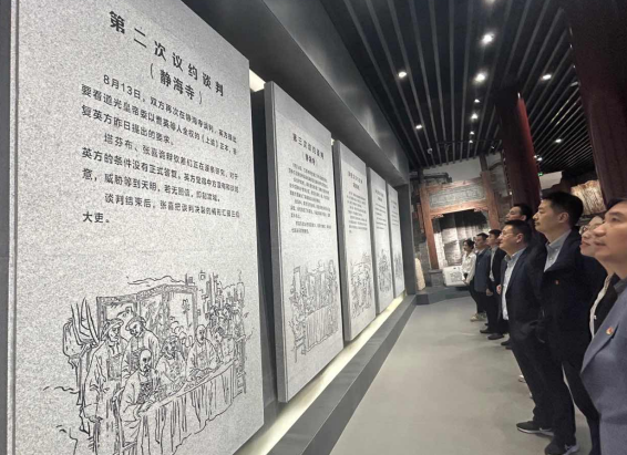 《南京条约》史料陈列馆位于鼓楼区,馆内以“百年沧桑,国耻毋忘”为主题,用大量的图片、史料和实物,介绍了鸦片战争爆发的历史背景和屈辱历史,讲述了近代中国不平等条约体系的形成与危害,回顾了香港回归的不懈努力和历史必然。支部党员认真参观了馆内历史资料,深刻感悟了中国共产党团结带领中国人民不懈斗争的峥嵘岁月,进一步增强了历史责任感和使命感。
