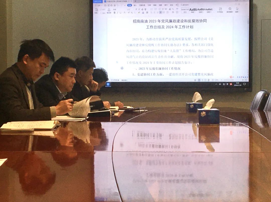 1月19日,招商南油召开了党风廉政建设和反腐败协同工作会,会议围绕加强党风廉政建设和反腐败协同工作进行了深入交流。招商南油党委副书记、纪委书记简玉金主持会议。