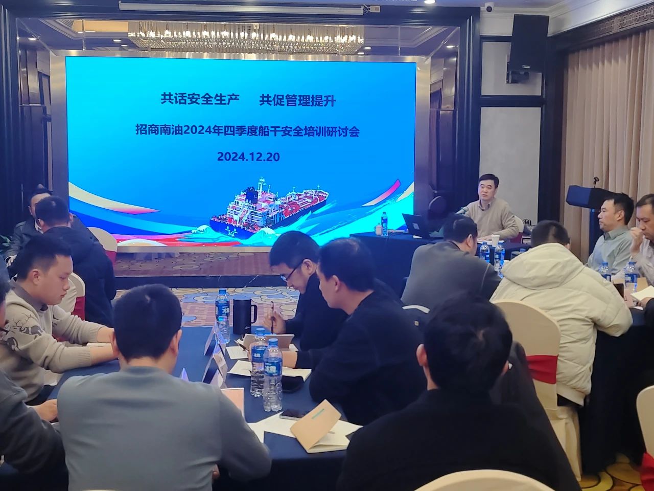12月18日,招商南油2024年四季度高级船员安全培训研讨会开班。公司总船长童学友,来自一线的管理级、操作级船干代表近50人参加了为期3天的培训研讨。