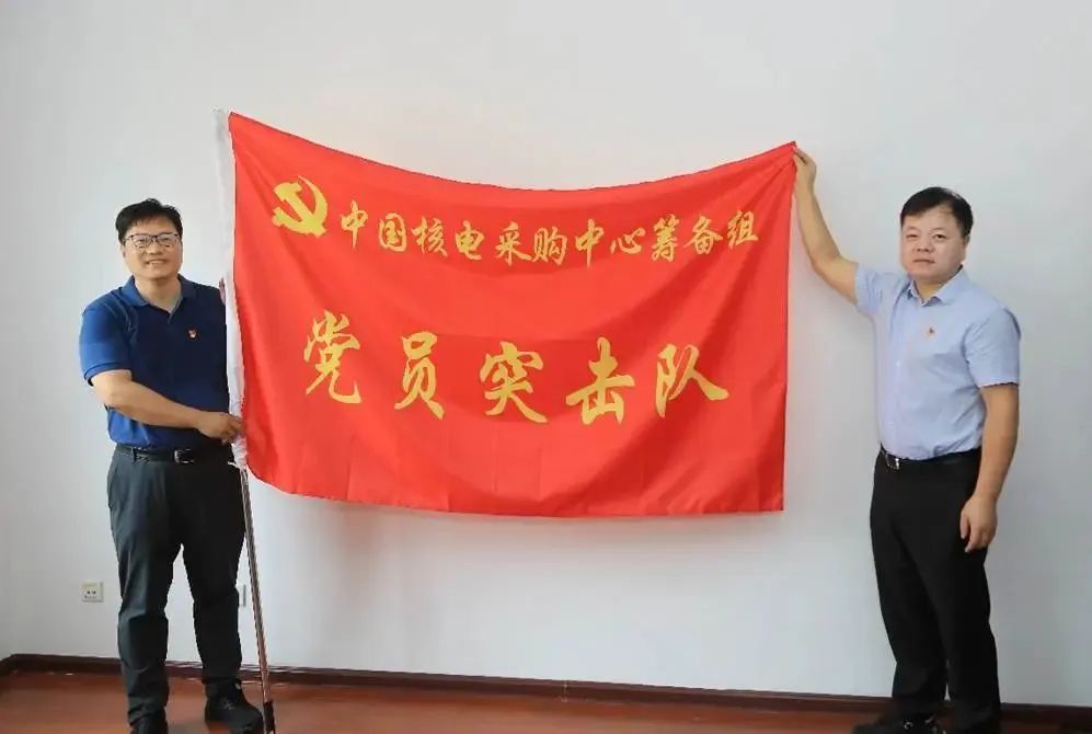 6月24日,中国核电党委书记、董事长卢铁忠亲切慰问筹备组干部职工,为数创中心、培训中心和采购中心筹备组党员突击队授旗,激励筹备组全体干部员工要进一步提高政治站位,积极参与集约化中心建设,注重集约化运作宣传引导,严紧细实做好中心筹备工作,为推动中国核电高质量发展历史上留下浓墨重彩的一笔。