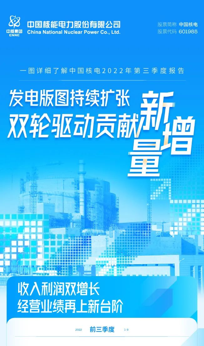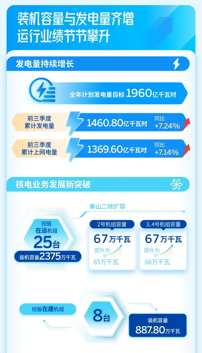 双增长!中国核电三季度营业收入181.31亿元同比增长10.78% 净利润25.94亿元 同比增长2