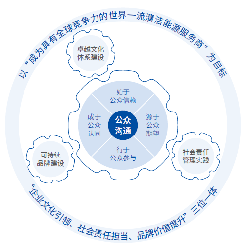 ESG管理路径明确方向。中国核电以“成为具有全球竞争力的世界一流清洁能源服务商”为目标,将公众沟通作为ESG管理的驱动力,以卓越文化理念赢得公众信赖为起点,以公众的期望和诉求为出发点找准ESG管理的方向,以多样的沟通参与增强公众的理解支持,以在公众心中建立起可持续的品牌形象认同作为衡量ESG管理的最终尺度,探索形成具有中国核电特色“企业文化引领、社会责任担当、品牌价值提升”的三位一体ESG管理和践行路径。