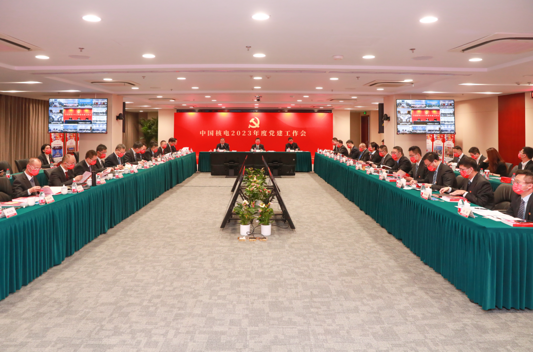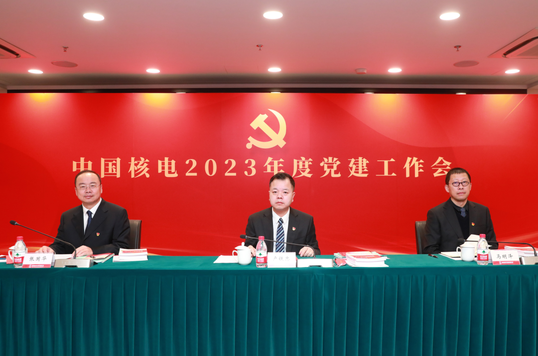 中国核电党委书记、董事长卢铁忠作题为《学习二十大精神凝聚奋进力量为加快建设世界一流清洁能源企业而团结奋斗》的2022年度党建工作报告,党委副书记、总经理马明泽传达上级会议精神,党委副书记张国华主持会议。