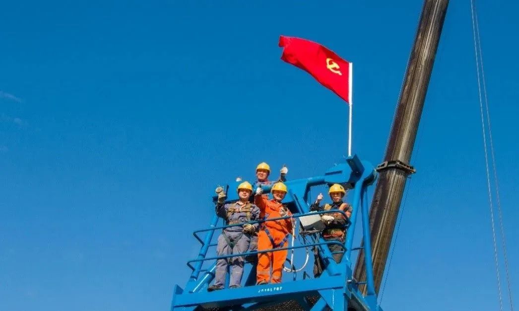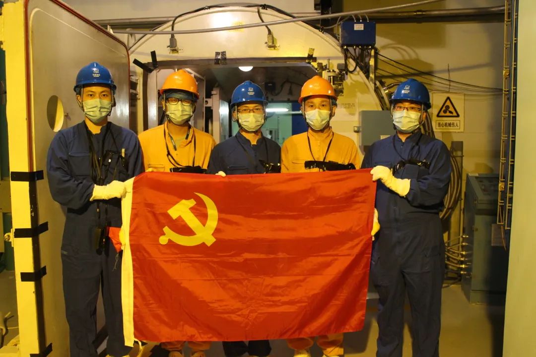 ▲党旗在“华龙一号”重大工程现场高高飘扬
