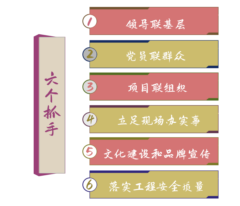 以“六项机制”为主要抓手,通过明确联委会和办公室会议决策机制统筹督办保障落实;构建完善荣誉体系,设立21项荣誉激励创先争优;开展基地宣传一体化工作讲好“元首工程”故事,团结凝聚全体建安单位职工群众,奋力打造“标杆工程”“精品工程”。