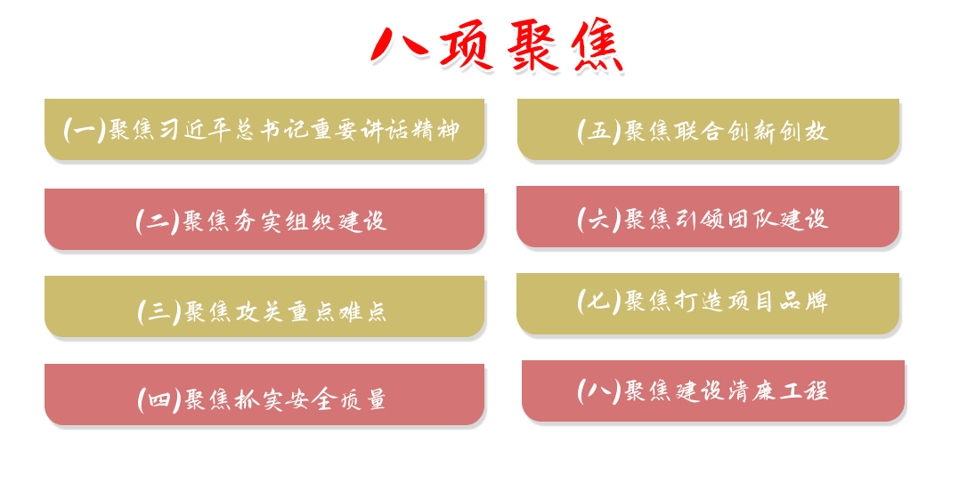 坚持以“八个聚焦”为发力方向,系统建立标杆工程指标体系,锚定标杆典范的新目标,打造18支任务式“精品工程突击队”开展突击攻坚,扎实推进“元首工程”建设;