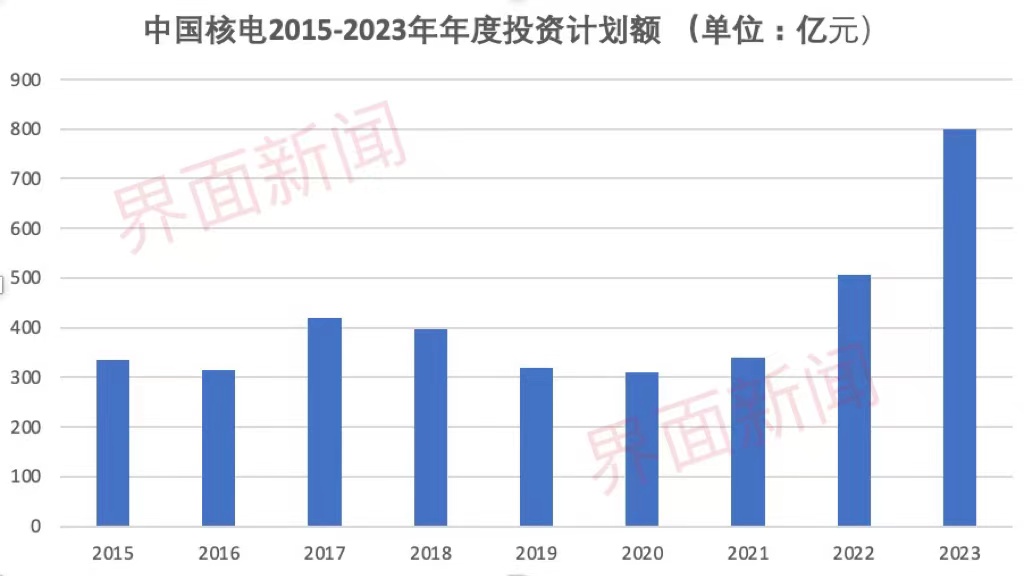 3月8日,中国核电公告称,根据发展规划和经营计划,其今年投资计划总额约800亿元。