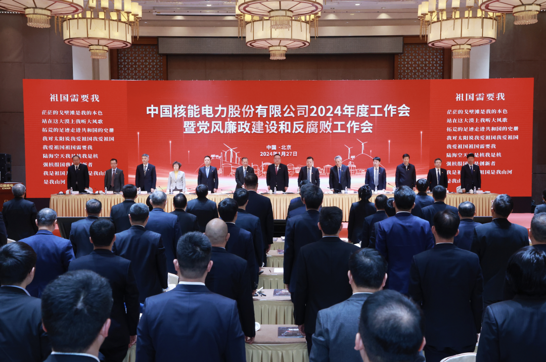 1月27日,中国核电召开2024年度工作会暨党风廉政建设和反腐败工作会,全面贯彻落实党的二十大精神和习近平总书记重要指示批示精神,认真落实中央经济工作会议精神和中核集团党组决策部署,全面总结中国核电过去一年工作,分析当前面临的发展形势,部署2024年度各项重点任务,深入推动党风廉政建设和反腐败工作,强调广大干部职工要乘势而上、再攀高峰,以新气象新作为谱写中国核电高质量发展新篇章,为实现中核集团“三位一体”奋斗目标、推进强国建设和民族复兴伟业而团结奋斗。