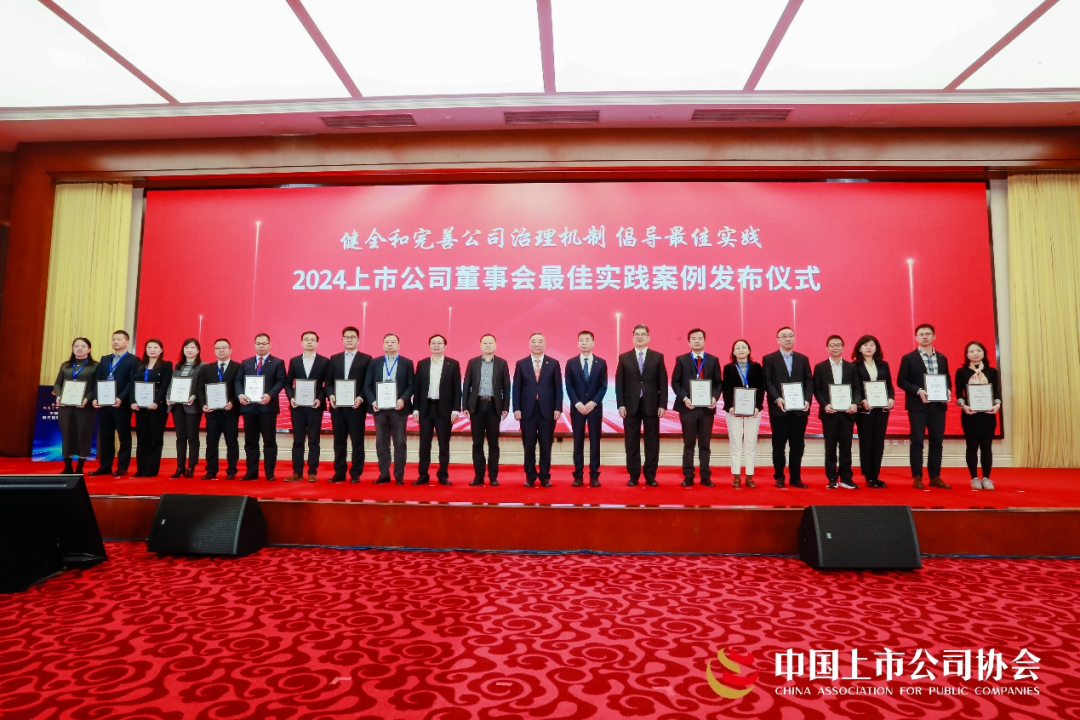 “上市公司董事会最佳实践案例”创建活动由中国上市公司协会运用客观指标与案例结合的方式,全面考核和评价上市公司董事会在评价期内的运作水平,旨在促进上市公司董事会合规有效运作,推动提高公司治理效能和发展质量,发挥优秀公司示范引领作用。经初审、专家委员会评审、诚信核查等环节,最终评选出2024“上市公司董事会最佳实践案例120家、优秀实践案例”247家、典型实践案例106家。