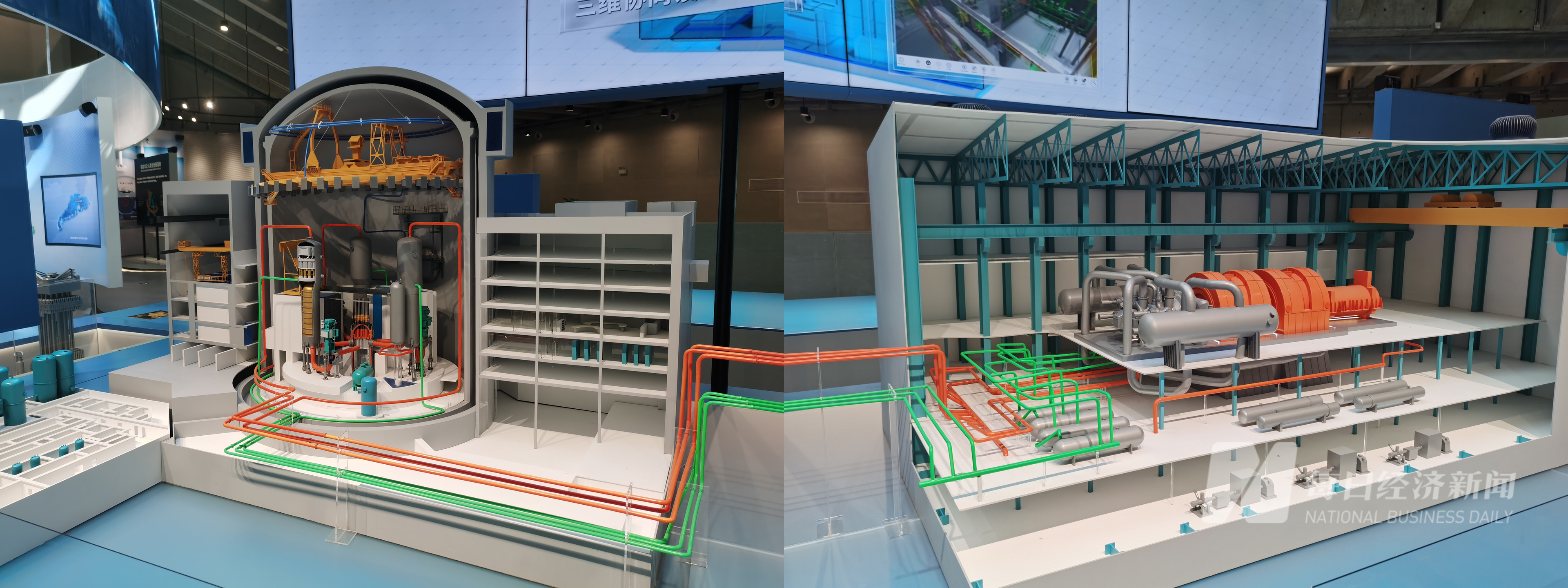 “华龙一号”核电机组反应堆厂房模型(左)和汽轮发电机厂房模型(右)