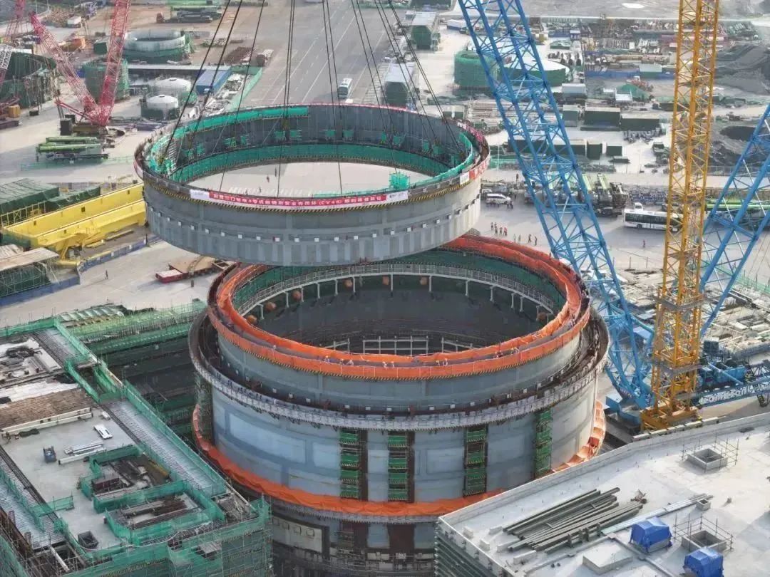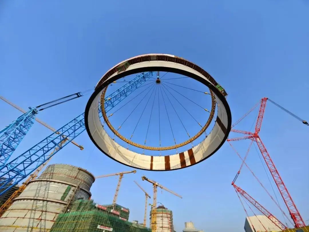 漳州核电3号机组钢衬里筒体全部吊装完成