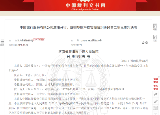 尽管中行拿出了一系列证据,均没有被法院采纳,最终一审、二审均判中行败诉,并全额承担舒新华的投资损失及相应利息。