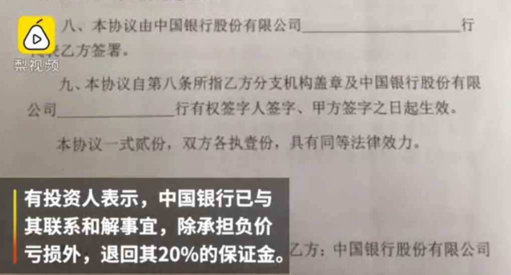 最终,法院也站在了投资人一边,判决中行承担全部穿仓损失,并补偿客户20%的本金损失。