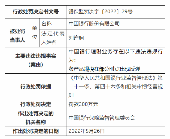 理财业务违法违规!中国银行被银保监会罚款200万元