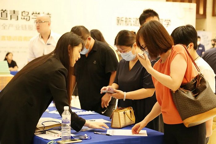 伴着青岛久违的明媚阳光,家长们早早地来到了活动现场,热情满满!会场门口排起了长长的队伍,家长们有序签到领取胡敏教授著作《家有儿女要留学》。新航道自主研发的图书和教材也吸引了不少家长驻足翻阅,备受参会家庭称赞。