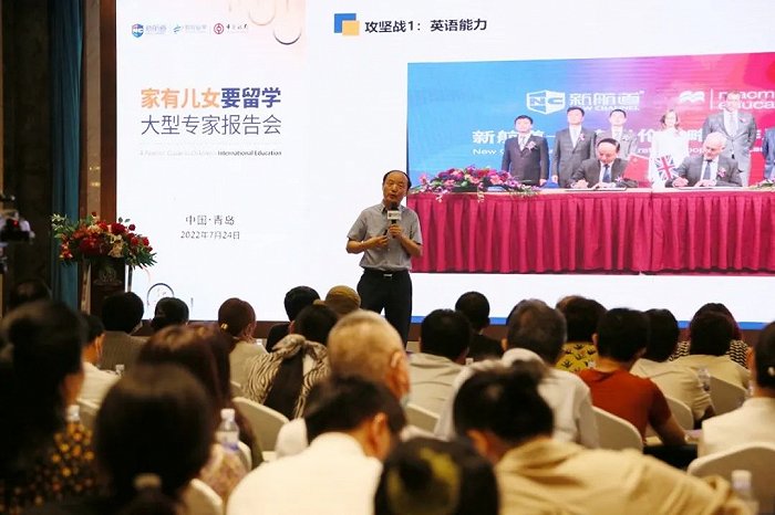 7月24日,由新航道国际教育集团与中国银行联合举办的“家有儿女要留学”胡敏教授大型专家报告会在青岛颐海花园酒店圆满举行。新航道国际教育集团董事长、中国故事研究院院长胡敏教授与现场近五百位学生和家长分享教育心得,解读留学大势。为众多岛城家庭带来了新的思考和逐梦的力量。