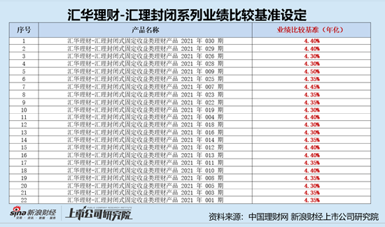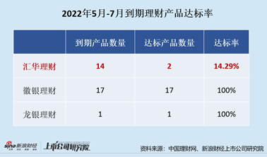 截至7月20日,汇华理财发行的汇理系列理财产品,已有22个产品到期,已到期的产品期限以12个月为主,风险等级均为PR2(中低风险),业绩比较基准在年化收益率4.3%-4.5%之间,目标人群为中等期限、追求稳健回报的投资人。