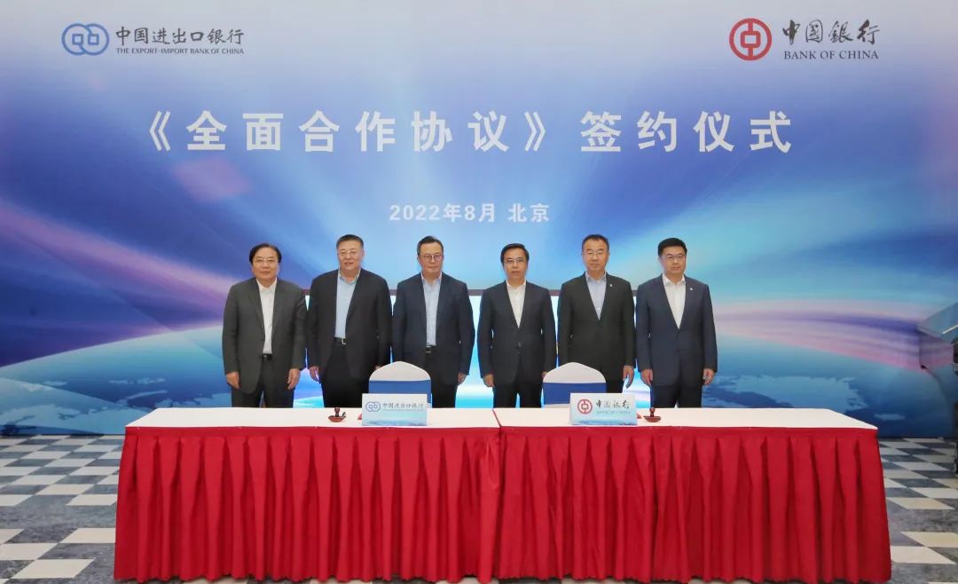 8月25日,在进出口银行董事长吴富林、行长任生俊和中国银行董事长刘连舸、行长刘金的见证下,进出口银行副行长张文才与中国银行副行长陈怀宇在京签署了全面合作协议。