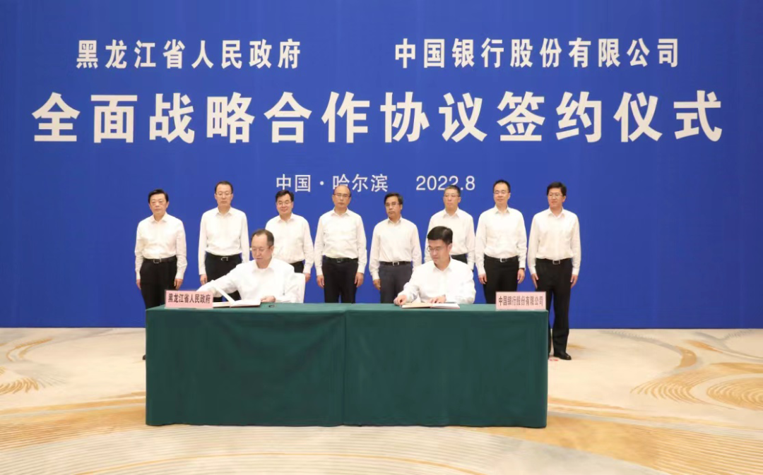 8月26日,中国银行与黑龙江省人民政府在哈尔滨签署战略合作协议。黑龙江省委书记、省人大常委会主任许勤,省委副书记、省长胡昌升,中国银行党委书记、董事长刘连舸,党委委员、副行长陈怀宇出席签约仪式。