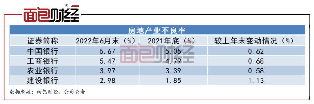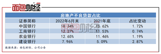 数据显示,截至2022年6月末,中国银行房地产业不良贷款占总不良贷款比重为18.34%,较上年末提升1.72个百分点,远超其他四大行。