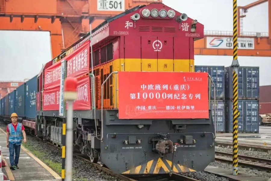我国首条中欧班列线路中欧班列(重庆)开行量突破10000列。新华社记者黄伟摄