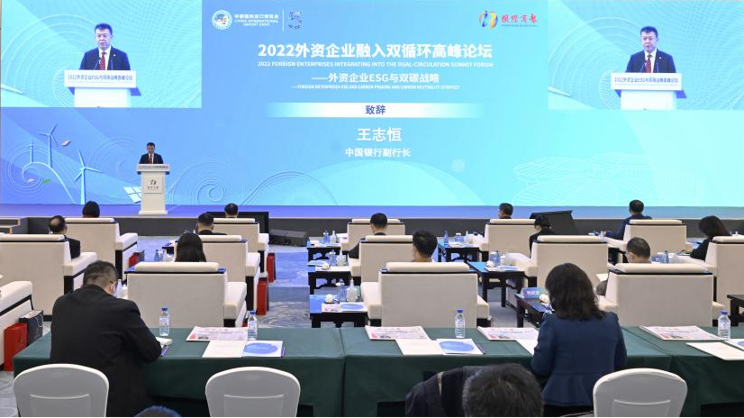 11月7日,第五届中国国际进口博览会期间,由商务部国际商报社、中国银行联合举办的“2022外资企业ESG与双碳战略高峰论坛在国家会展中心(上海)举行。商务部部长助理李飞、中国银行副行长王志恒、商务部国际商报社社长于晓现场出席论坛并致辞。