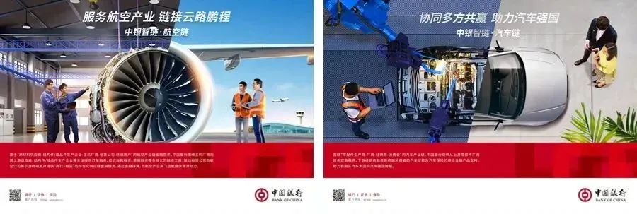 中国银行结合不同行业链条企业的金融需求,综合运用各类供应链金融产品,深耕重点产业,全面提升金融服务供给,支持产业转型升级,已陆续发布了“中银智链·建筑链、装备链、航空链、汽车链、医药链、家电链、绿色链、冷链物流链”等八大行业服务方案。
