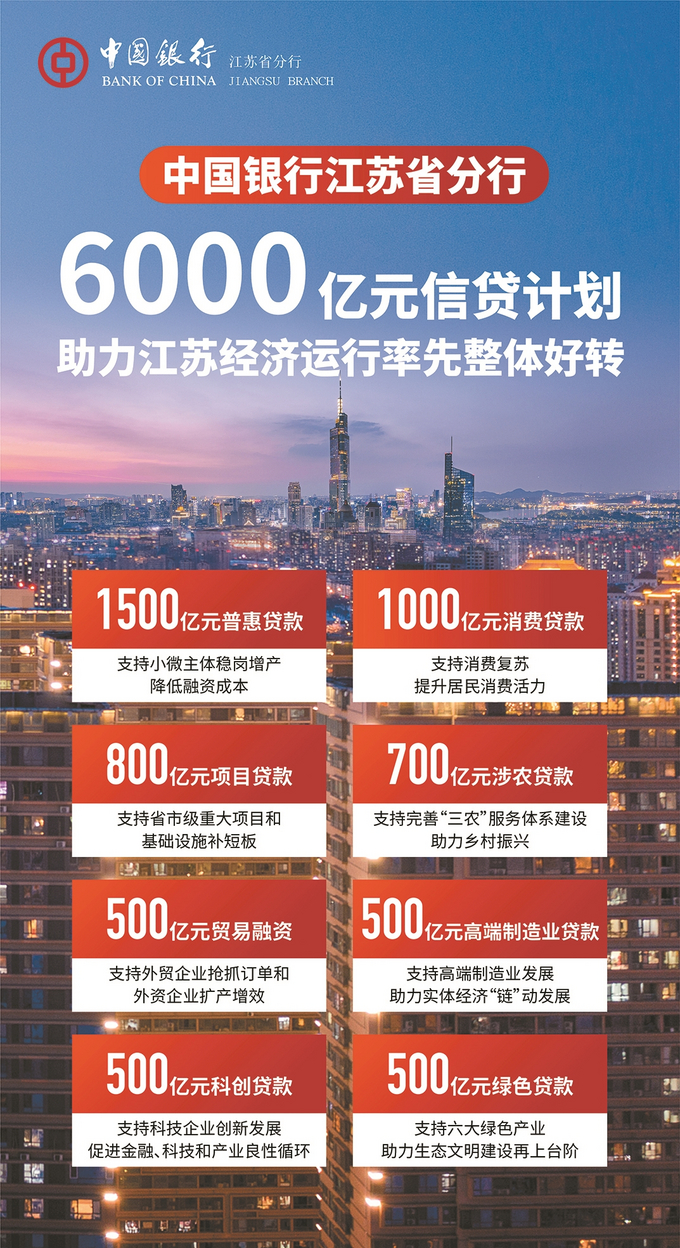 每一次微观的行动,都折射宏观的格局。2023年开局伊始,为快速响应江苏省政府2023年1号文《关于推动经济运行率先整体好转的若干政策措施》,推出6000亿元信贷投放计划,制定八项工作举措,通过稳经济、惠民生、促转型,助力改善社会心理预期、提振发展信心,助力江苏经济运行率先整体好转。