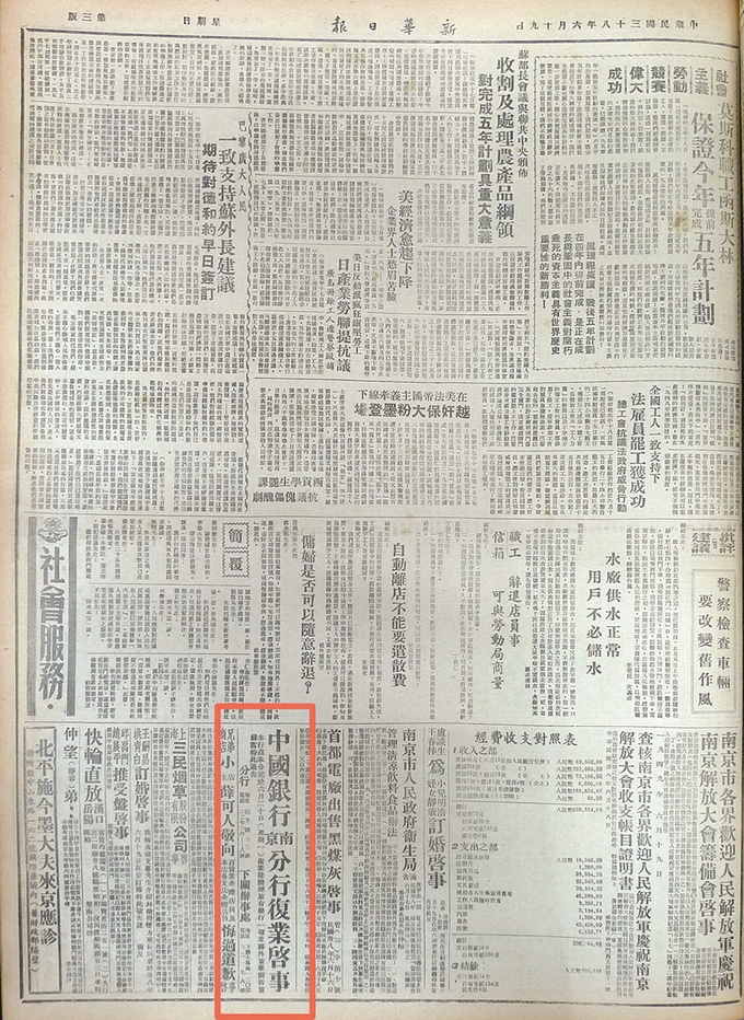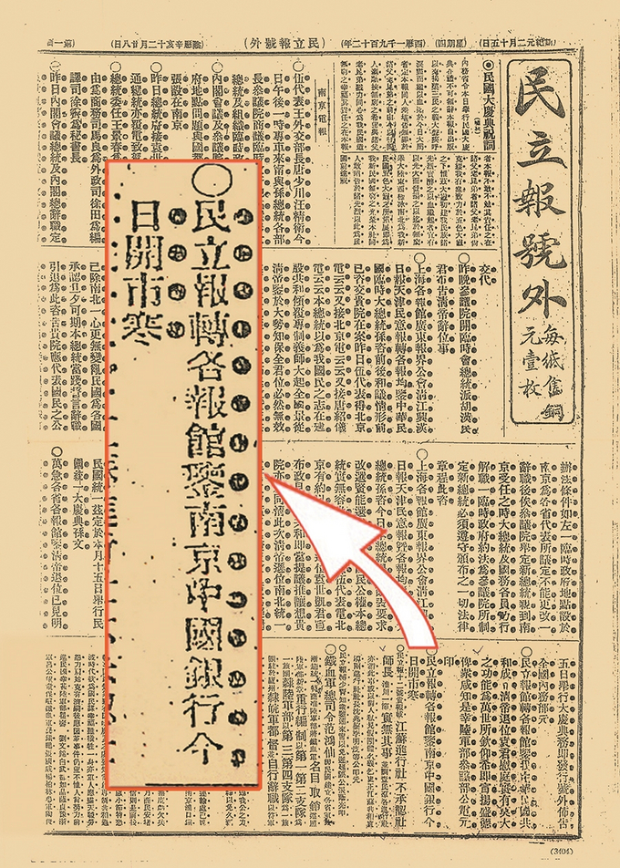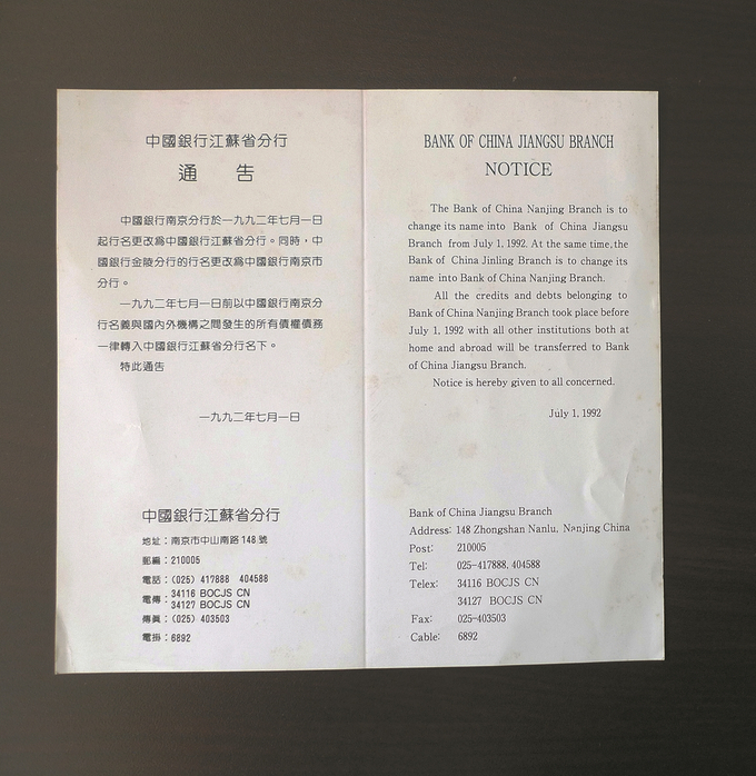 历史的轴线,让沧桑可观可感。1912年1月24日,孙中山先生批准,将大清银行改为中国银行,并于同年2月5日在上海正式成立。自此中国银行开始了“服务社会民众、振兴民族金融”的百年征程。1912年大清银行股东讨论关于大清银行改为中国银行大会的会议记录中提及,中国银行开设步骤“尤以南京为先,已定于本周中旬先行交易”。当年2月14日,南京中国银行在珠宝廊开业。开业时该行发行了“南京券”,这是中华民国也是中国银行自印并正式发行的钞票。