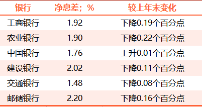 值得注意的是,年报显示,中国银行净息差1.76%,较上年提升1个基点。其他五家国有大行的净息差均有10个基点以上的降幅。中国银行净息差逆势上涨,不过即便如此,其净息差仍排名第五。