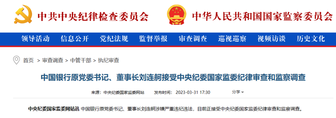3月31日,中国银行发布2022年年报,并在下午召开2022年业绩交流会。同时,中国银行官网消息称,当天,中国银行党委召开会议,第一时间传达中央对刘连舸进行纪律审查和监察调查的决定。党委书记葛海蛟主持会议,党委班子全体成员参加会议。