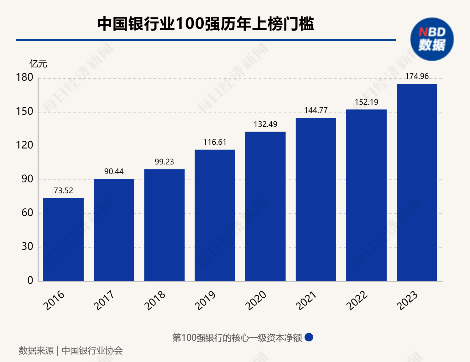 《每日经济新闻》记者注意到,榜单以核心一级资本净额为依据排序,并对前100家商业银行的经营规模、盈利能力、运营效率和资产质量等进行综合展示。2023年榜单以2022年银行年报数据为基础,覆盖所有类型商业银行,并首次将外资法人银行纳入排名。
